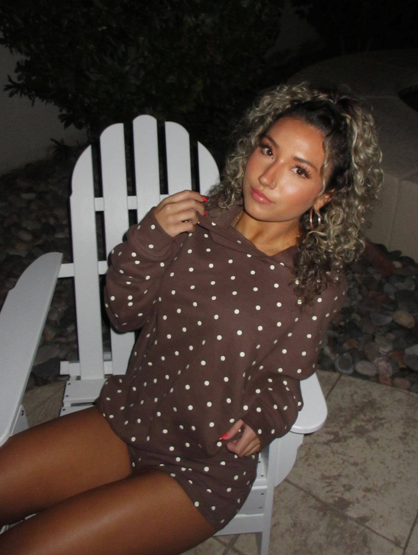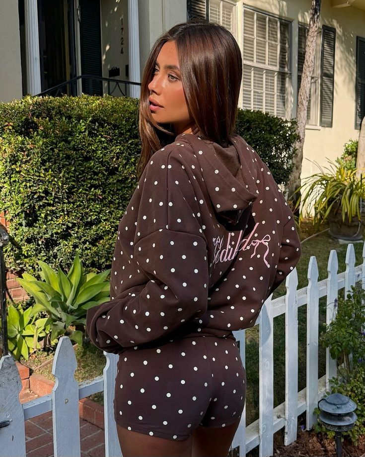 Brown Polka Dot Hoodie & Shorts Set